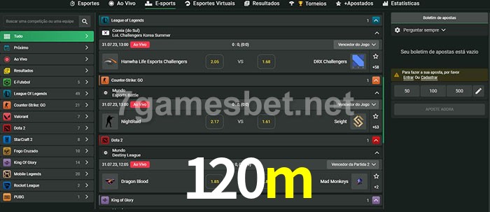 A aposta 120m oferece aos jogadores a experiência mais conveniente de apostas em eSports!